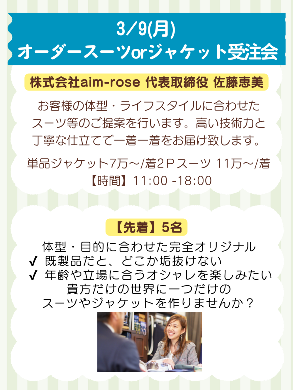 オーダーメイドスーツor ジャケット受注会
